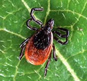 Ticks. Several tick species are common to New Jersey including the Brown Dog tick, Lone Star tick and Black-Legged, or Deer tick. Flat and seed like with four limbs and no antennae, ticks are not insects but members of the arachnid family like spiders, scorpions and mites. Brown to dark red in color, ticks are tiny, about 1/8 inch, quadrupling in size as they engorge on blood from their human or animal hosts. Found in wooded and grassy areas, ticks transmit dangerous bacterial diseases including Lyme Disease and Rocky Mountain Spotted Fever. The best defense is prevention. When walking through woods or fields, wear long-sleeved shirts and pants. DEET-based insect repellent is an effective preventative. Veterinarians carry tick preventatives for pets.